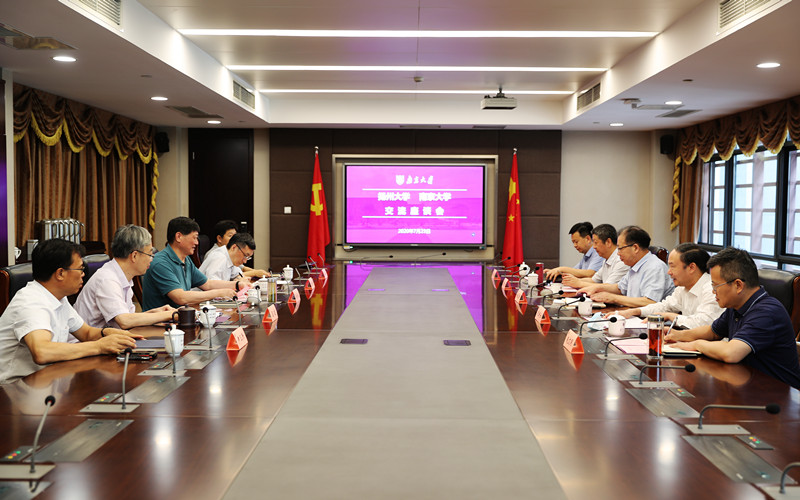 发布日期:2020-07-28<>访问次数:次 7月23日上午,扬州大学党委书记姚冠新、校长焦新安一行访问我校,并就学校发展规划编制等方面的工作与我校领导展开座谈交流。南京大学校党委书记胡金波、校长吕建出席交流会并发表讲话。