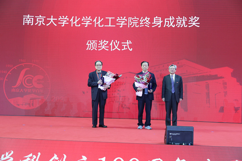 高分子化学家程镕时院士、物理化学家陈懿院士、分析化学家陈洪渊院士被授予“南京大学化学学科终身成就奖”,以感谢他们为学院发展做出的卓越贡献。南京大学常务副书记杨忠为到场的院士颁发奖项。