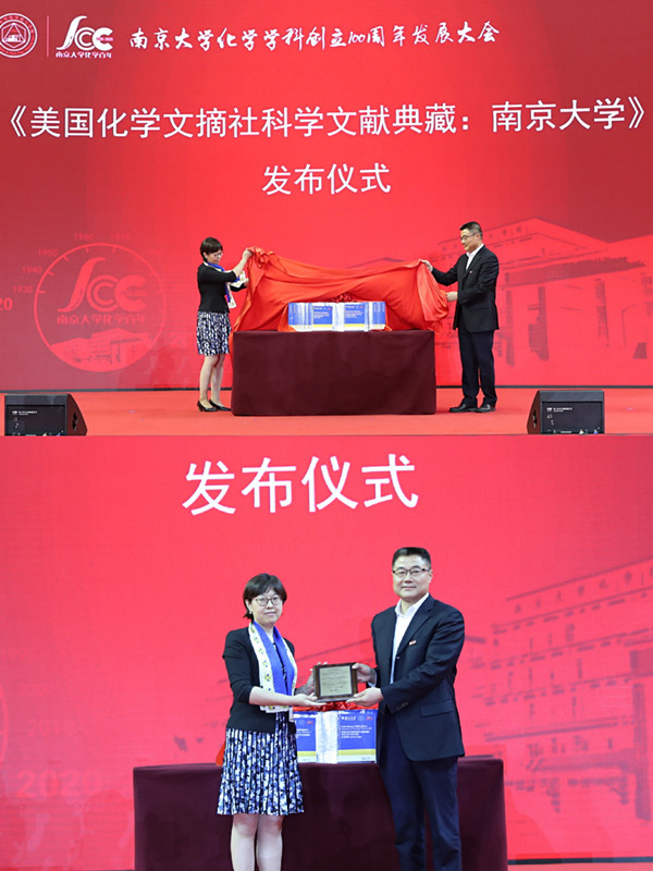 作为全球 的科学组织之一,美国化学会专程向南大化学学科创立百年发来贺信。美国化学文摘社中国区总经理马清扬女士代表美国化学会主席H.N.Cheng博士和美国化学文摘社总裁ManuelGuzman先生宣读贺信,并介绍《美国化学文摘社科学文献典藏:南京大学》系列图书。校党委副书记薛海林与马清扬共同为《美国化学文摘社科学文献典藏:南京大学》系列丛书揭幕。